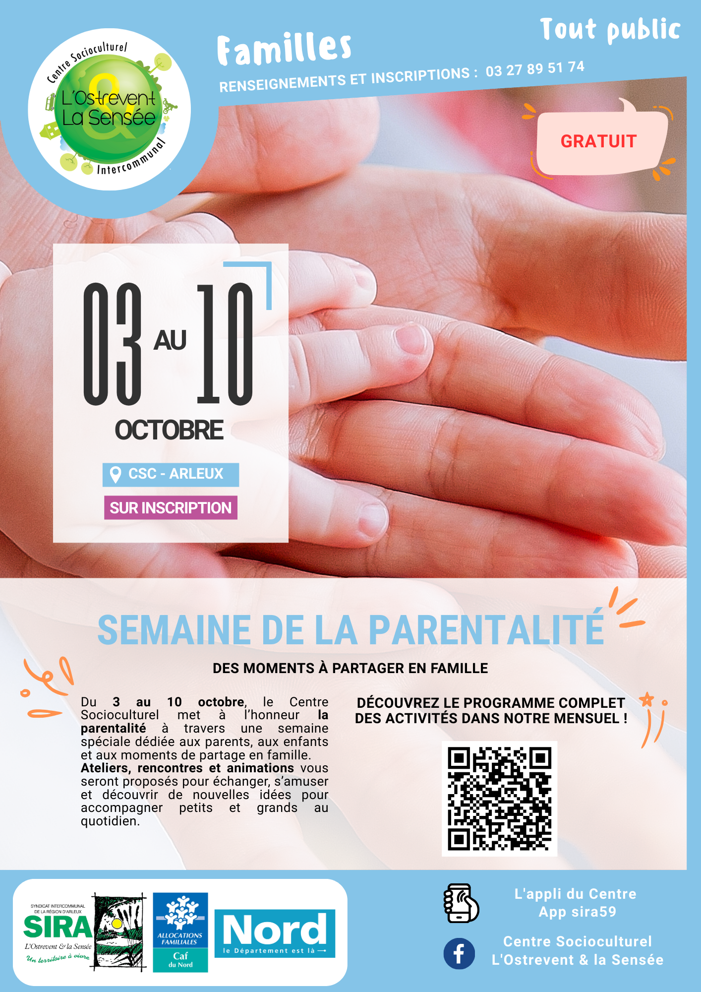 Semaine de la Parentalité 📅 Du 3 au 10 octobre | 🕖 – | 📍 Sur le Territoire Le Centre...